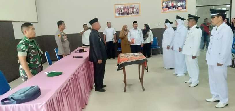 Sungai Kanan – Kapten Inf J. Sembiring, Danramil 12/LP Kodim 0209/Labuhanbatu, menghadiri acara Pengambilan Sumpah Jabatan dan Pelantikan Pejabat Kepala Desa yang digelar di Aula Kantor Camat Sungai Kanan Kelurahan Langga Payung, Kabupaten Labuhan Batu Selatan, pada Rabu (26/03/2025).