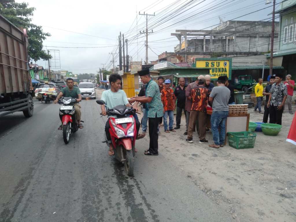 Labuhanbatu Utara – Pemerintahan Kecamatan diwakili oleh Kasi Kesos Kecamatan Na IX-X dan Ormas FKPPI, PP, Grib beserta Tokoh Masyarakat, tokoh agama menggelar aksi peduli dan solidaritas dengan membagikan ratusan takjil. Pembagian takjil ini dipusatkan disepanjang jalan lintas Desa Kampung Pajak Kecamatan NA. IX-X Kabupaten Labuhanbatu Utara. Pada Rabu (26/03/2025).