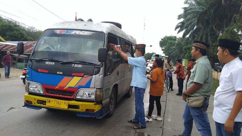 Adapun 400 paket takjil yang dibagikan kepada pengguna jalan dan masyarakat yang melintas menjelang waktu berbuka puasa.