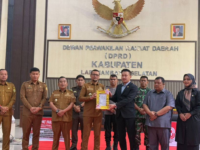 Labuhanbatu Selatan, 23 September 2025 Kodim 0209 labuhanbatu Danramil 11/KP Mayor Inf Hendra Gunawan yang mewakili Dandim 0209/LB Letkol Inf Yudy Ardiyan Saputro S.ip menghadiri Rapat Paripurna DPRD Labuhanbatu Selatan terkait penyampaian Nota Keuangan atas Rancangan APBD Tahun Anggaran 2026, yang digelar di Ruang Paripurna DPRD, Kotapinang. Bupati Labuhanbatu Selatan, Ferry Syahputra Simatupang, SH menegaskan bahwa RAPBD harus menjadi instrumen pembangunan yang berdampak langsung pada kesejahteraan masyarakat.