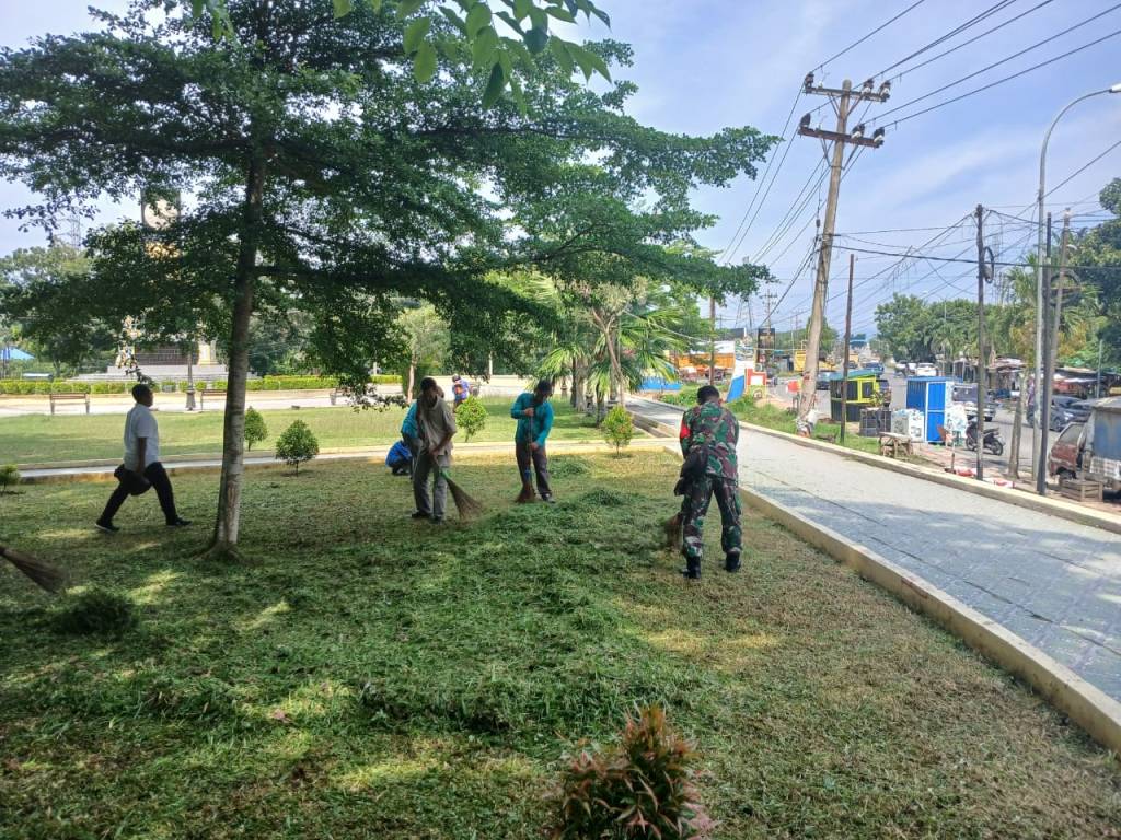 Labuhanbatu – Kodim 0209 Labuhanbatu Koramil 08/RP Kodim 0209/Labuhanbatu melaksanakan Bakti Teritorial Prima di sekitar Tugu Adipura, Desa Janji, Kecamatan Bilah Barat, Rabu (24/09/2025). Kegiatan dalam rangka HUT TNI ke-80 ini diikuti personel Koramil, pemerintah kecamatan dan desa, serta siswa SMK Al-Aziz dengan melakukan pembersihan parit, pemotongan rumput, dan pengangkatan sampah.