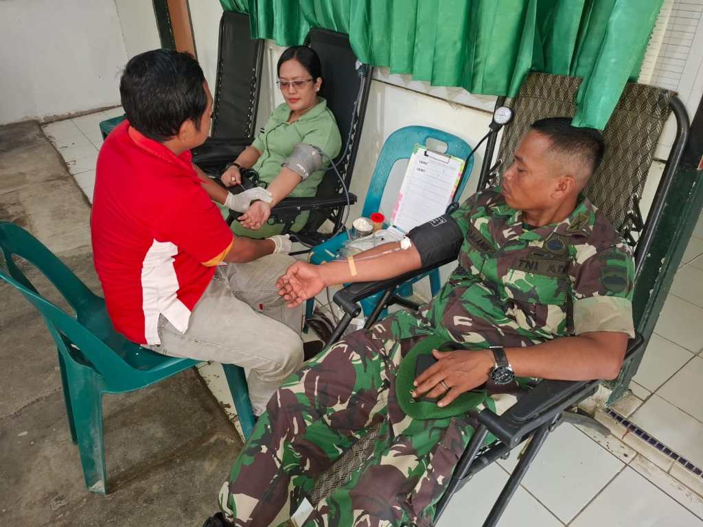 Koramil 13/AN menggelar kegiatan sosial berupa donor darah, pembagian sembako, dan gotong royong bersama masyarakat di Makoramil 13/AN, Kamis (25/9/2025). Kegiatan ini melibatkan personel TNI, Persit, PMI, serta warga setempat.