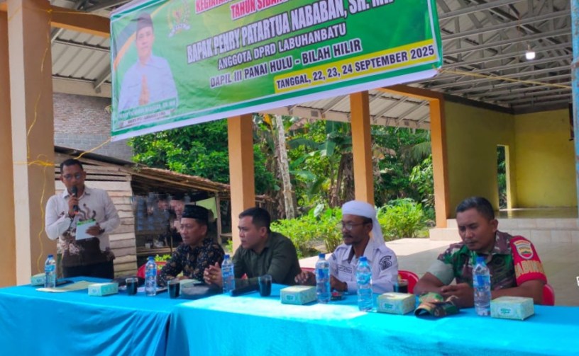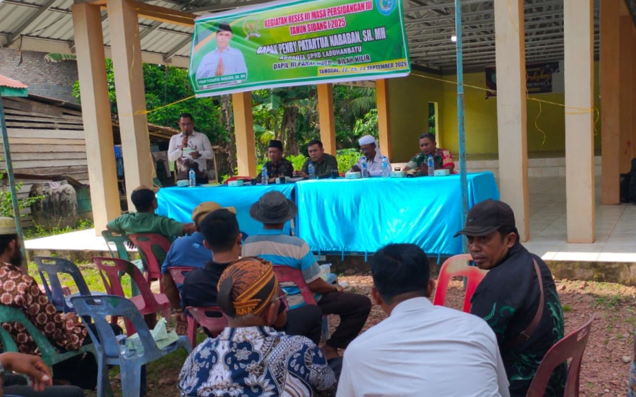 Babinsa Koramil 09/NL, Serda Suyatno, menghadiri kegiatan Reses Anggota DPRD Kabupaten Labuhanbatu Masa Persidangan III Tahun Sidang I 2025 di Balai Desa Sei Kasih, Kecamatan Bilah Hilir, Rabu (24/9/2025). Kegiatan ini menjadi wadah masyarakat untuk menyampaikan aspirasi dan kebutuhan pembangunan secara langsung.