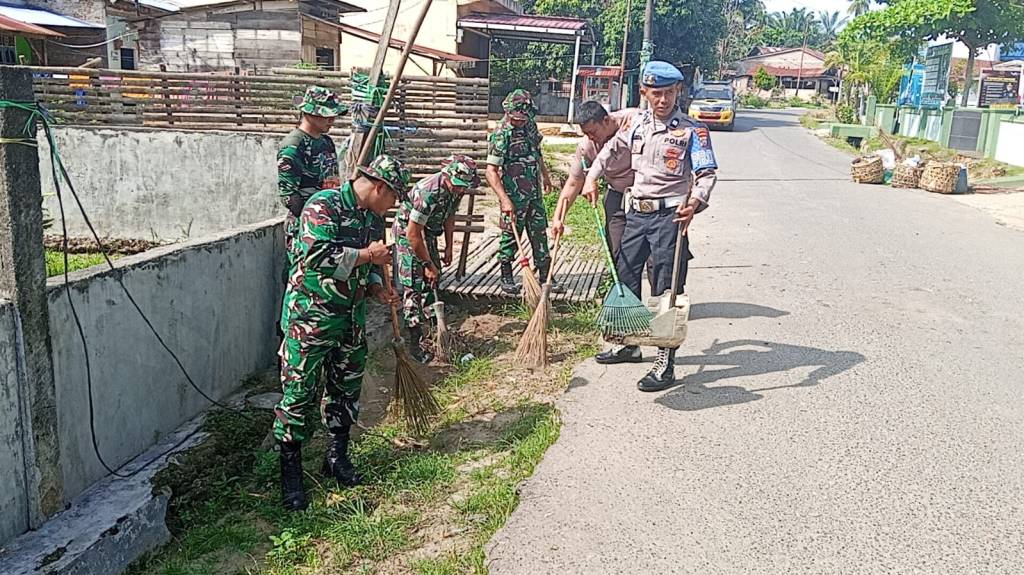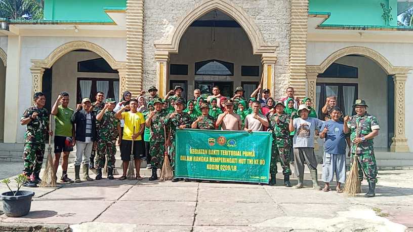 Dalam rangka menyambut HUT TNI ke-80, Koramil 12/LP di bawah pimpinan Kapten Inf J. Sembiring melaksanakan karya bhakti bersama Forkopimcam Sungai Kanan dan masyarakat di Kelurahan Langga Payung, Kecamatan Sungai Kanan, Kabupaten Labuhanbatu Selatan, Jumat (26/9/2025). Kegiatan ini melibatkan personel TNI, Polsek Sungai Kanan, perangkat kecamatan, tenaga kesehatan, perangkat kelurahan, Persit, dan masyarakat sekitar.