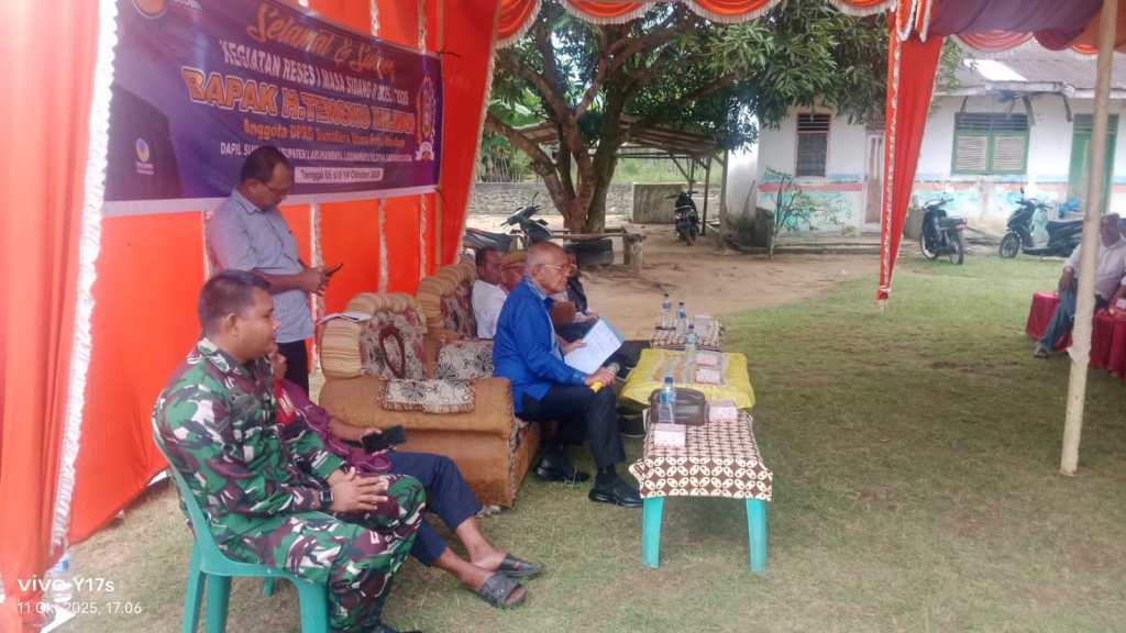 Labuhan Batu Selatan , kodim0209labuhanbatu – Babinsa Koramil 12/LP Kodim 0209/LB Serda Edy Harahap melaksanakan pendampingan kegiatan Reses I Masa Sidang II Tahun 2025 oleh Anggota DPRD Provinsi Sumatera Utara H. Tengku Wilman dari Fraksi Partai NasDem. Kegiatan tersebut berlangsung di halaman SD Negeri 17 Langga Payung, Lingkungan Aek Tinga, Kelurahan Langga Payung, Kecamatan Sungai Kanan, Kabupaten Labuhan Batu Selatan, Sabtu (11/10/2025).