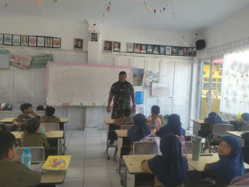 Dengan metode edukatif yang dikemas menyenangkan, para siswa diajak bernyanyi bersama, membaca puisi, dan berdialog ringan mengenai simbol-simbol negara serta semangat kebangsaan. Suasana penuh semangat tampak di ruang kelas, di mana para siswa antusias menjawab pertanyaan serta mengekspresikan rasa cinta tanah airnya. Kegiatan ini menjadi wujud pembinaan karakter generasi muda yang dilakukan TNI secara berkesinambungan di wilayah binaan.