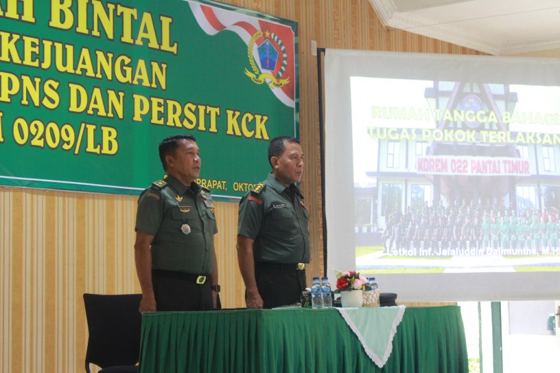 Kegiatan Bintal yang dipimpin oleh Kasdim 0209/LB Mayor Inf S.H. Tanjung ini turut dihadiri para Danramil jajaran, perwira staf, serta Ketua Persit KCK Cabang XXXVI Kodim 0209/LB beserta pengurus dan anggota. Suasana berlangsung penuh khidmat dengan antusiasme tinggi dari seluruh peserta yang mengikuti ceramah keagamaan bertema pembinaan mental, moral, dan spiritual.