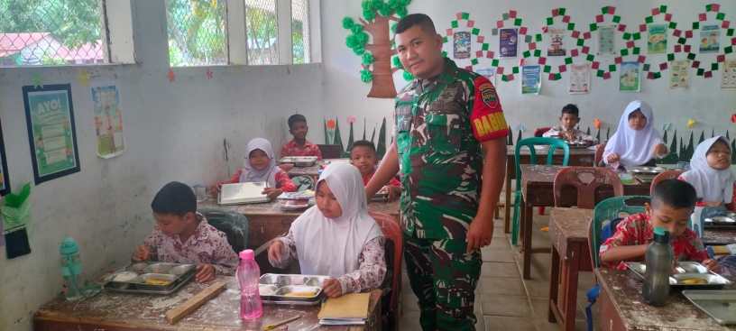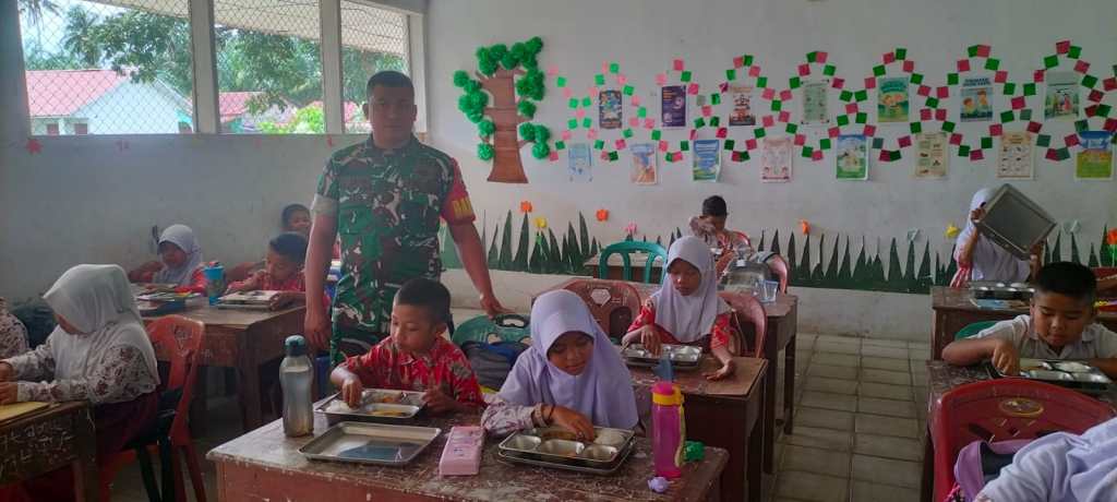 Labuhanbatu Utara , kodim0209labuhanbatu — Dalam rangka mendukung program nasional peningkatan gizi anak sekolah, Babinsa Koramil 07/AKB Kodim 0209/Labuhanbatu Serma Endi Espana melaksanakan monitoring pelaksanaan Program Makan Bergizi Gratis (MBG) di SD Negeri 112321 Desa Kampung Pajak, Kecamatan NA IX-X, Kabupaten Labuhanbatu Utara, Rabu (12/11/2025).