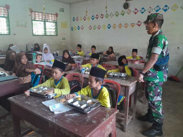 Dalam kegiatan tersebut, Serda Muhklis turut memastikan pendistribusian menu MBG kepada 333 siswa berjalan lancar. “Ini sudah menjadi tugas kami untuk turun langsung mendampingi petugas SPPG guna memastikan distribusi berjalan aman, tertib, dan diterima seluruh siswa,” ujarnya. Kehadiran Babinsa sekaligus menjadi bentuk kedekatan TNI dengan masyarakat dalam mendukung program peningkatan gizi anak sekolah.