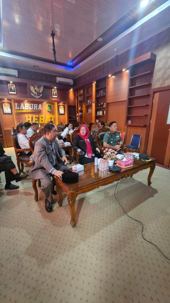 Labuhanbatu Utara , kodim0209labuhanbatu — Kodim 0209/Labuhanbatu menunjukkan komitmen dalam mendukung penguatan ekonomi desa melalui Program Koperasi Desa (Kopdes) Merah Putih dengan menghadirkan Danramil 01/AK Mayor Inf Parlindungan Sinaga, S.H. pada Zoom Meeting nasional bersama Presiden Republik Indonesia. Kegiatan digelar di Aula Bram Tarigan Kantor Bupati Labuhanbatu Utara, Selasa (25/11/2025), dan diikuti jajaran Forkopimda sebagai bentuk dukungan terhadap kebijakan strategis pemerintah pusat.