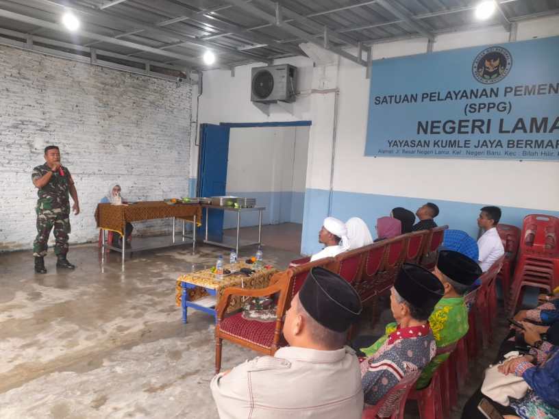 Labuhanbatu , kodim0209labuhanbatu– Kodim 0209/LB melalui Koramil 09/Negeri Lama menunjukkan komitmen nyata terhadap peningkatan kesehatan masyarakat dengan menghadiri peresmian Satuan Pelayanan Pemenuhan Gizi (SPPG) dan Program Makanan Bergizi Gratis (MBG) di Yayasan Kumle Jaya Bermartabat, Kelurahan Negeri Baru, Kecamatan Bilah Hilir, Kamis (4/12/2025). Danramil 09/NL Kapten Cba Pandapotan Matondang, SH., MH., hadir bersama unsur Forkopimcam sebagai bentuk dukungan terhadap pemenuhan gizi anak sekolah.