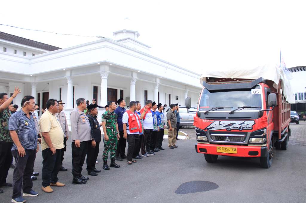 Labuhanbatu , kodim0209labuhanbatu – Pemerintah Kabupaten Labuhanbatu kembali menunjukkan kepedulian dan solidaritas kemanusiaan terhadap masyarakat terdampak bencana alam di Kabupaten Aceh Tamiang dengan memberangkatkan 9 unit truk bantuan kemanusiaan. Pelepasan bantuan berlangsung di Pendopo Rumah Dinas Bupati Labuhanbatu, Kamis (18/12/2025), dipimpin Wakil Bupati Labuhanbatu H. Jamri, ST., didampingi Komandan Kodim 0209/Labuhanbatu Letkol Inf Yudy Ardiyan Saputro, S.I.P., bersama unsur Forkopimda.