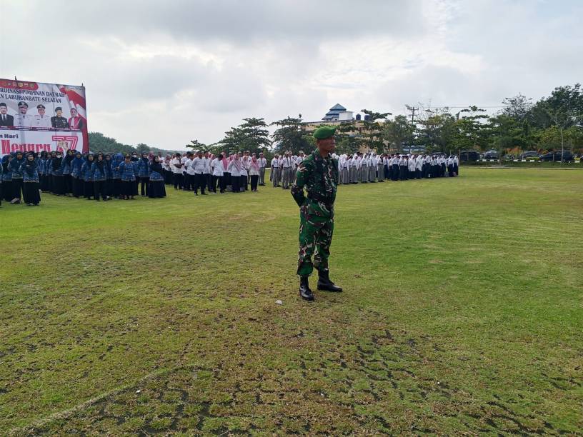 Labuhanbatu Selatan , kodim0209labuhanbatu — Kodim 0209/Labuhanbatu terus meneguhkan komitmennya dalam memperkuat nilai-nilai nasionalisme dan semangat bela negara melalui keikutsertaan pada Upacara Peringatan Hari Bela Negara ke-77 Tahun 2025 yang digelar di Lapangan Kantor Bupati, Desa Sosopan, Kecamatan Kotapinang, Kabupaten Labuhanbatu Selatan, Jumat (19/12/2025). Upacara berlangsung khidmat dengan mengusung tema “Teguhkan Bela Negara untuk Indonesia Maju”, serta diikuti unsur TNI, Polri, ASN, dan Forkopimda setempat.