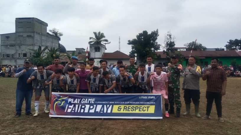 Labuhanbatu , kodim0209labuhanbatu – Kodim 0209/Labuhanbatu menunjukkan komitmennya dalam mendukung pembinaan generasi muda melalui olahraga dengan menghadiri partai Final Mini Soccer Pemuda Bilah Hilir yang digelar di Lapangan Sepak Bola Kelurahan Negeri Lama, Kecamatan Bilah Hilir, Kabupaten Labuhanbatu, Minggu (28/12/2025). Kehadiran TNI menjadi bentuk nyata dukungan terhadap kegiatan positif yang menumbuhkan semangat kebersamaan dan sportivitas di tengah masyarakat.