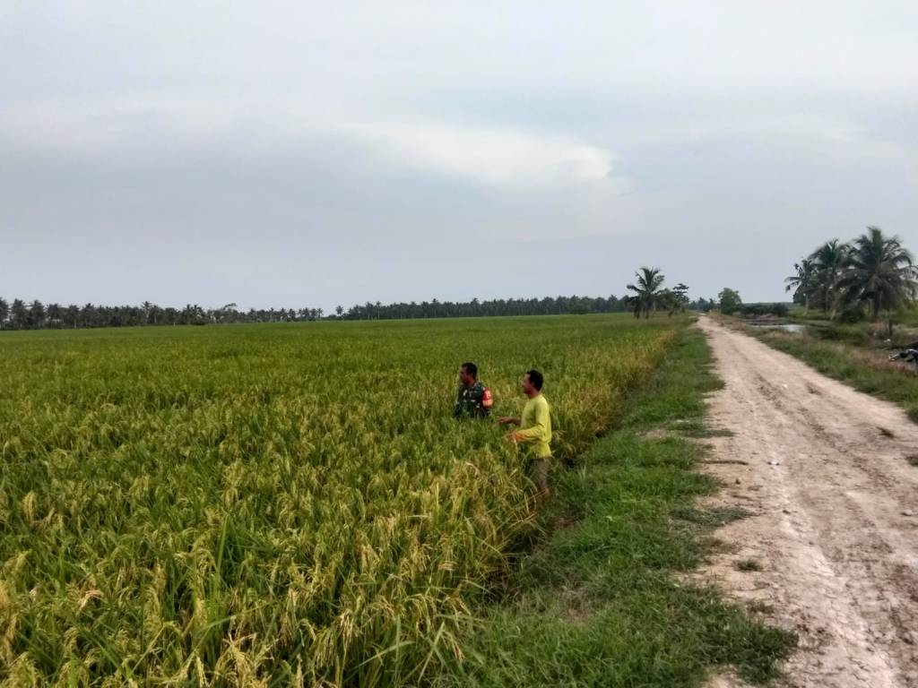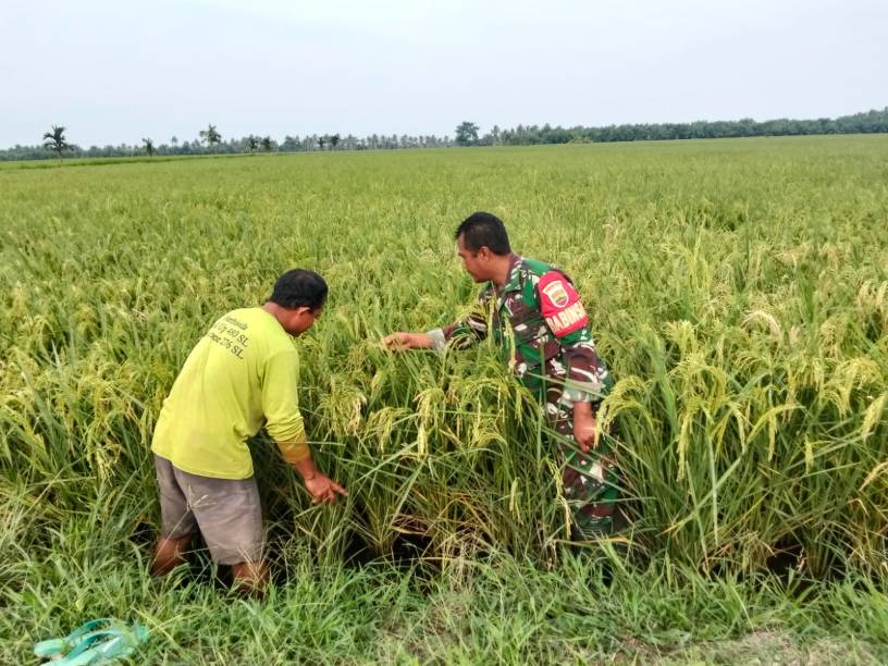 Pendampingan dilakukan dengan memantau kondisi tanaman padi yang telah memasuki masa menguning menjelang panen, sekaligus memastikan tanaman terbebas dari gangguan hama. Kehadiran Babinsa di tengah petani menjadi bentuk nyata peran TNI AD dalam membantu meningkatkan produktivitas pertanian serta memberi motivasi kepada petani agar tetap semangat mengelola lahan secara optimal.