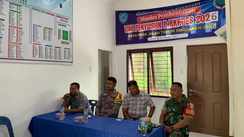 Labuhanbatu , kodim0209labuhanbatu – Dalam rangka mendukung perencanaan pembangunan desa yang partisipatif dan tepat sasaran, Babinsa Koramil 09/NL Kodim 0209/Labuhanbatu, Peltu Muhammad Hakim, menghadiri Musyawarah Desa (Musdes) Perkebunan Bilah Tahun 2026 yang digelar di Kantor Desa Perkebunan Bilah, Kecamatan Bilah Hilir, Kabupaten Labuhanbatu, Kamis (8/1/2026).