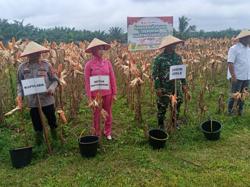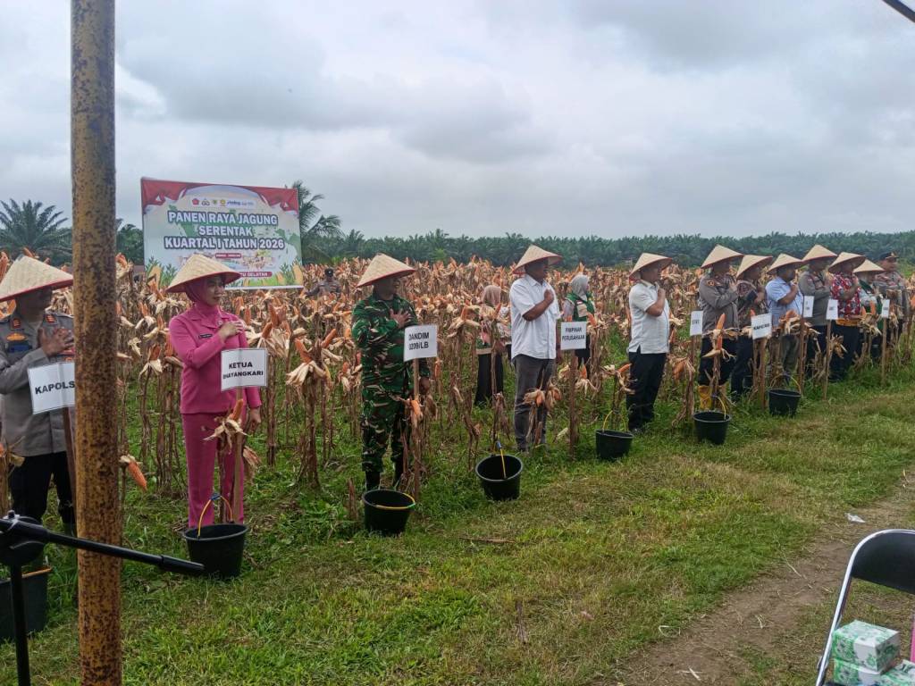 Labuhanbatu , kodim0209labuhanbatu – Kodim 0209/Labuhanbatu melalui Batituud Koramil 12/LP Pelda A. M. Siregar bersama satu orang anggota melaksanakan pendampingan Panen Raya Jagung Serentak Kuartal I Tahun 2026 yang digelar Polres Labuhanbatu Selatan di lahan Perkebunan PT. Sumber Tani Agung (STA), Desa Sabungan, Kecamatan Sungai Kanan, Kabupaten Labuhanbatu Selatan, Kamis (8/1/2026). Kegiatan ini menjadi bagian dari dukungan lintas sektor terhadap program ketahanan pangan nasional.