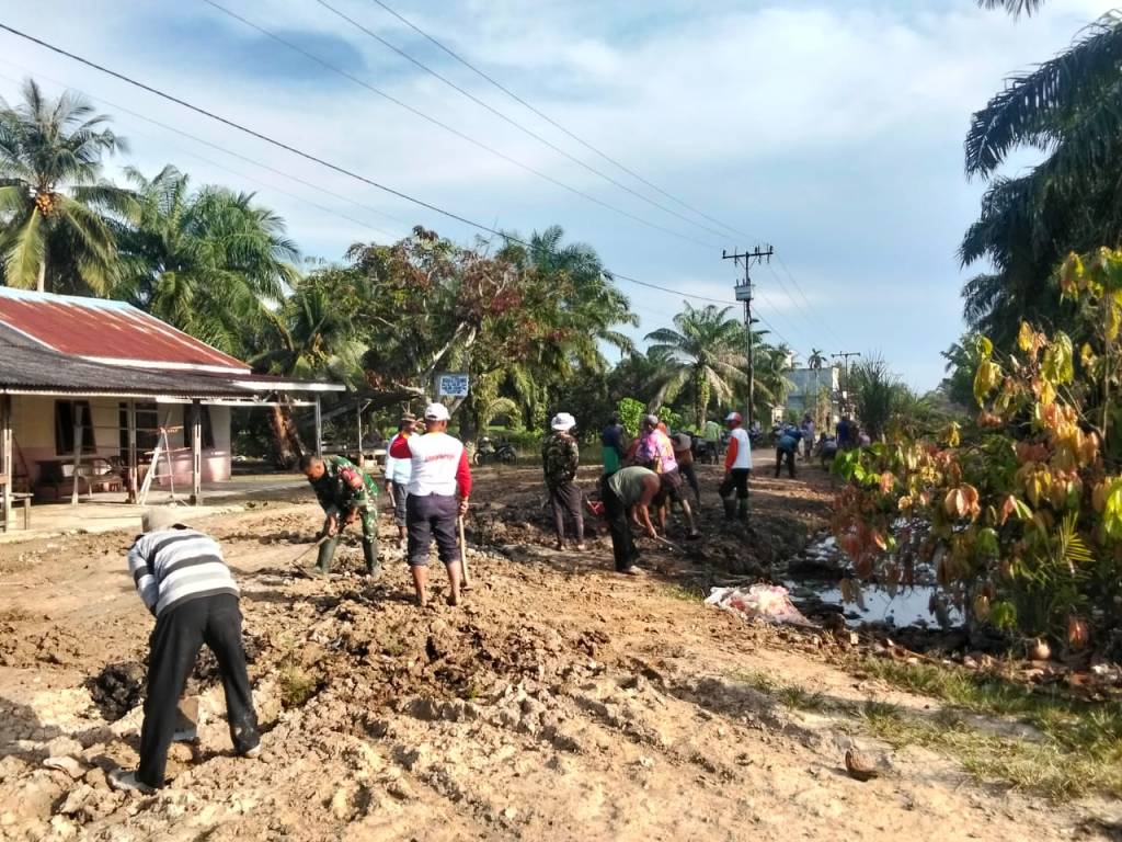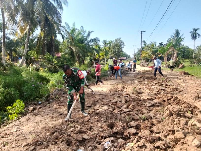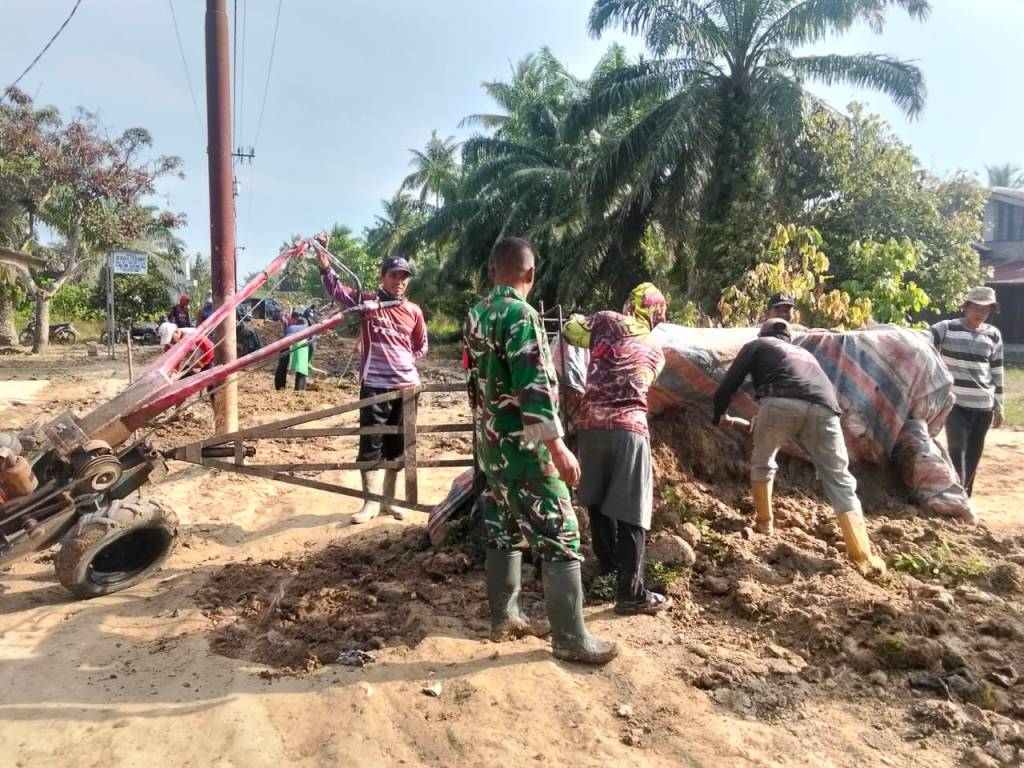 Labuhanbatu Utara , kodim0209labuhanbatu – Babinsa Koramil 02/Tanjung Leidong , Sertu Erwin, bersama warga melaksanakan gotong royong perbaikan jalan di Dusun Kampung Jawa, Desa Tanjung Mangedar, Kecamatan Kualuh Hilir, Minggu (11/1/2026). Kegiatan ini merupakan wujud kepedulian TNI terhadap kesulitan masyarakat sekaligus upaya memperlancar akses transportasi warga.