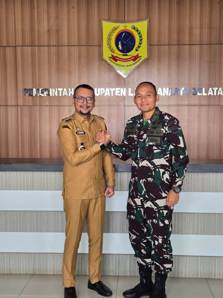 Labuhanbatu Selatan , kodim0209labuhanbatu – Komandan Kodim 0209/Labuhanbatu Letkol Kav Hanung Kaptiadji, S.Sos., M.I.P., melaksanakan silaturahmi dengan Bupati Labuhanbatu Selatan Fery Sahputra Simatupang, S.H., bertempat di ruang kerja Bupati Labusel, Jalan Lintas Kotapinang–Gunung Tua, Desa Sosopan, Kecamatan Kotapinang, Kabupaten Labuhanbatu Selatan, Senin (12/01/2026).