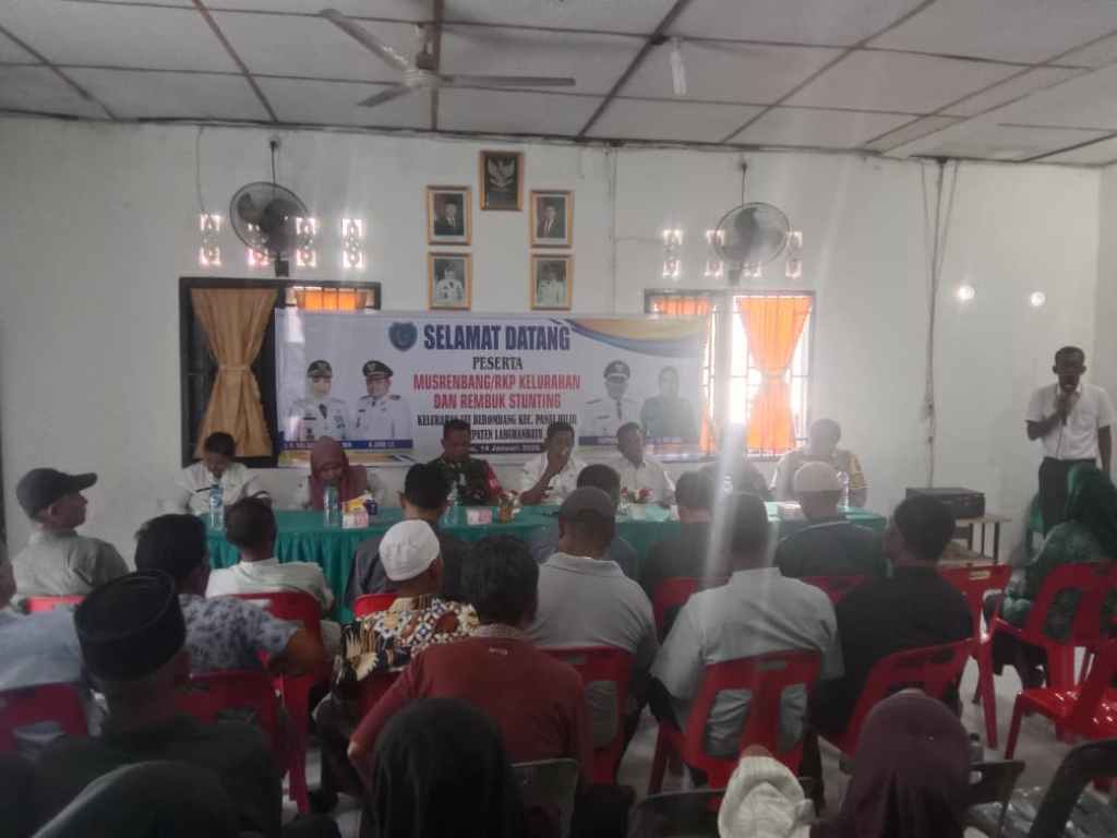 Labuhanbatu , kodim0209labuhanbatu – Babinsa Kelurahan Sei Berombang Koramil 03/SB Kodim 0209/Labuhanbatu Serma Suritno menghadiri kegiatan Musyawarah Perencanaan Pembangunan (Musrenbang) dan Rembuk Stunting Tahun 2026 yang digelar di Aula Kelurahan Sei Berombang, Kecamatan Panai Hilir, Kabupaten Labuhanbatu, Rabu (14/01/2026).