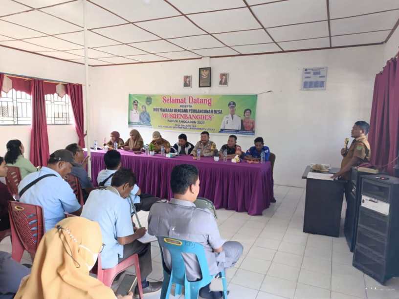 Musrenbang diikuti unsur pemerintah kecamatan dan desa, Badan Permusyawaratan Desa (BPD), TNI-Polri, para kepala dusun, serta perwakilan masyarakat. Forum ini menjadi titik awal penyusunan prioritas pembangunan desa dengan mengedepankan musyawarah, keterbukaan, dan partisipasi aktif warga.