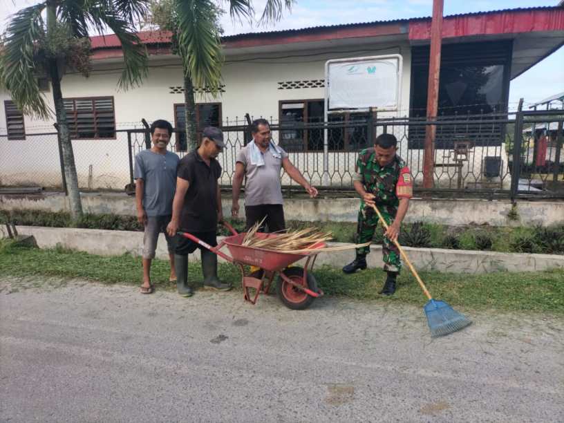 Kegiatan tersebut melibatkan personel Koramil 01/AK bersama Babinsa Serka Ediman Sipangkar yang berbaur langsung dengan masyarakat membersihkan lingkungan. Sasaran kegiatan meliputi pembersihan badan jalan, saluran air, serta area pemukiman warga guna menciptakan lingkungan yang bersih, sehat, dan nyaman.