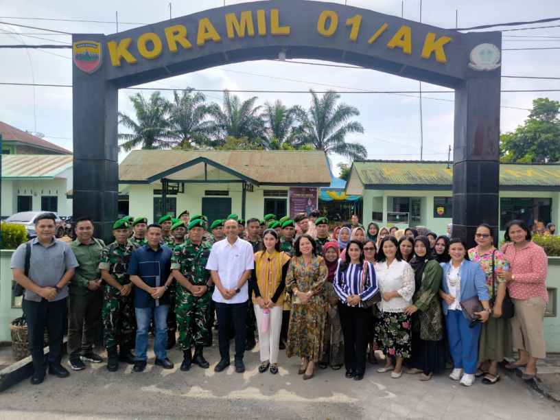 Kedatangan Dandim beserta rombongan disambut langsung oleh Danramil 01/AK Mayor Inf Parlindungan Sinaga, S.H., bersama seluruh personel dan ibu-ibu Persit. Dalam sambutannya, Danramil menyampaikan kondisi wilayah binaan Koramil 01/AK yang mencakup dua kecamatan dengan 25 desa/kelurahan, serta memaparkan pelaksanaan program kewilayahan, termasuk pembangunan KDKMP yang sedang berjalan di lima titik.