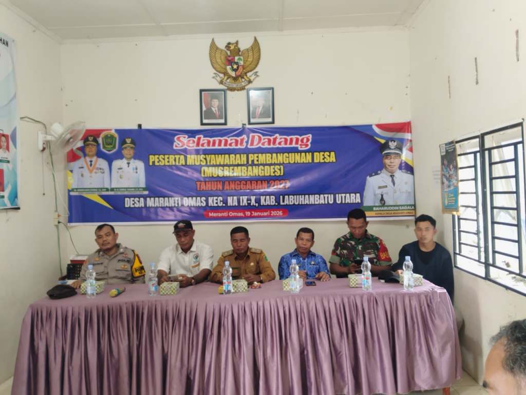 Labuhanbatu Utara , kodim0209labuhanbatu – Babinsa Koramil 07/AKB Kodim 0209/Labuhanbatu, Kopka Imam Rafli, menghadiri kegiatan Musyawarah Rencana Pembangunan (Musrenbang) Desa Meranti Omas, Kecamatan NA IX-X, Kabupaten Labuhanbatu Utara, Selasa (20/01/2026). Kehadiran Babinsa tersebut merupakan wujud nyata peran TNI AD dalam mendukung perencanaan pembangunan desa yang partisipatif dan berorientasi pada kepentingan masyarakat.