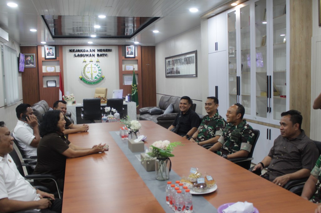 Komandan Kodim 0209/Labuhanbatu Letkol Kav Hanung Kaptiaji, S.Sos., M.I.P., melaksanakan silaturahmi ke Kantor Kejaksaan Negeri Labuhanbatu yang berlokasi di Jalan Sisingamangaraja, Rantauprapat, Kecamatan Rantau Selatan, Kabupaten Labuhanbatu, Rabu (21/01/2026). Kunjungan ini merupakan silaturahmi perdana Dandim 0209/LB sebagai bagian dari penguatan hubungan kelembagaan antar unsur Forum Koordinasi Pimpinan Daerah (Forkopimda).