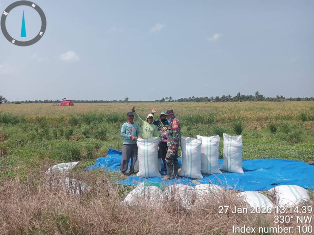 Dari hasil panen tersebut, produksi gabah kering yang diperoleh mencapai sekitar 3,5 ton per hektare dengan harga gabah di tingkat petani sebesar Rp6.500 per kilogram. Capaian ini menjadi indikator positif terhadap peningkatan produktivitas pertanian di wilayah binaan Koramil 03/SB sekaligus memperkuat ketahanan pangan daerah.