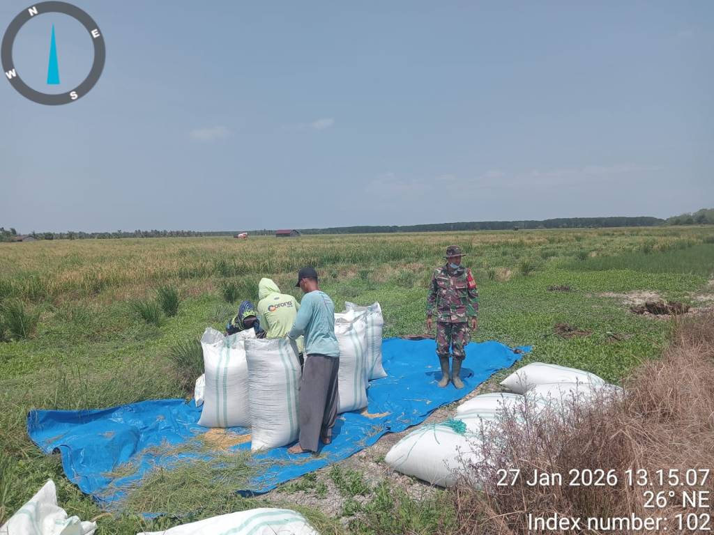 Labuhanbatu , kodim0209labuhanbatu – Kodim 0209/Labuhanbatu terus menunjukkan komitmennya dalam mendukung program swasembada pangan nasional melalui peran aktif aparat kewilayahan. Kali ini, Babinsa Koramil 03/Sei Berombang melaksanakan pendampingan panen padi perdana di Desa Sei Baru, Kecamatan Panai Hilir, Kabupaten Labuhanbatu, Selasa (27/01/2026).