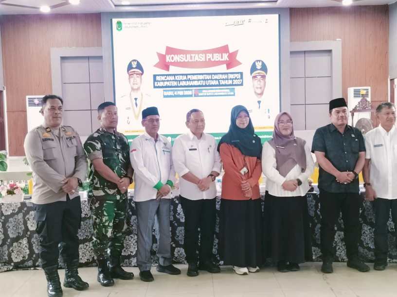 Labuhanbatu Utara , kodim0209labuhanbatu – Kodim 0209/Labuhanbatu melalui Danramil 01/Aek Kanopan Mayor Inf Parlindungan Sinaga, S.H., menghadiri Rapat Konsultasi Publik Rancangan Awal Rencana Kerja Pemerintah Daerah (RKPD) Kabupaten Labuhanbatu Utara Tahun 2027 yang digelar di Aula Ahmad Dwi Syukur, Kantor Bupati Labuhanbatu Utara, Rabu (4/2/2026). Kehadiran TNI dalam forum ini merupakan bentuk dukungan terhadap proses perencanaan pembangunan daerah yang partisipatif dan berorientasi pada kepentingan masyarakat.