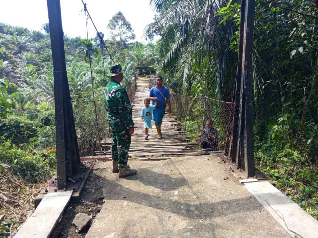 Labuhanbatu Selatan – Kodim 0209/Labuhanbatu melalui Koramil 12/Langga Payung melaksanakan pengecekan Jembatan Perintis (jembatan gantung) yang berada di Dusun Patihe Jae, Desa Sampean, Kecamatan Sungai Kanan, Kabupaten Labuhan Batu Selatan, Kamis (5/2/2026). Kegiatan ini dipimpin langsung Danramil 12/LP Kapten Inf Mahyudin Siregar, S.H., bersama lima orang anggota Koramil serta didampingi personel Penerangan Kodim 0209/LB.