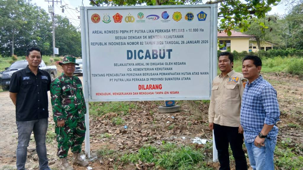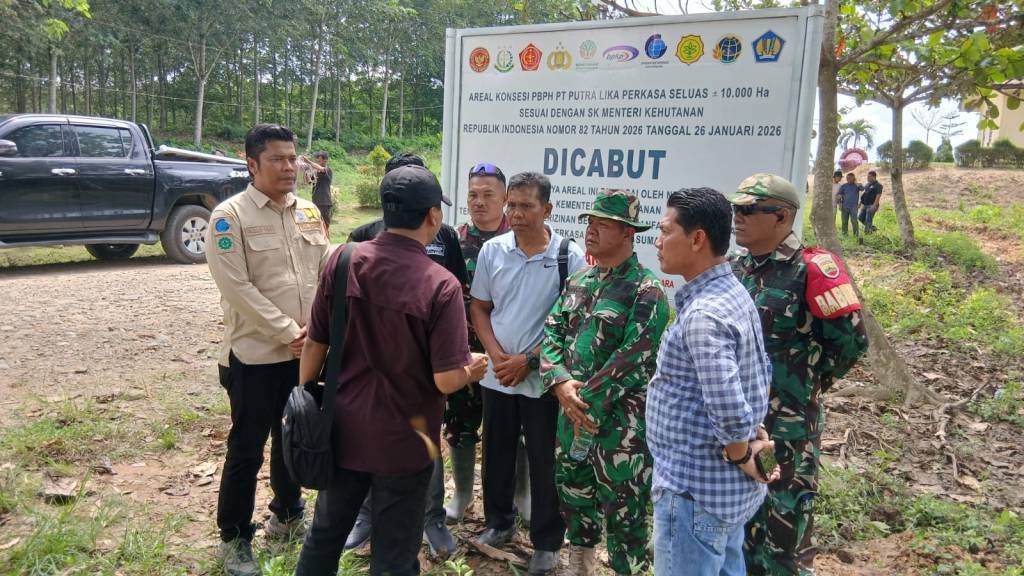 Labuhanbatu Selatan , kodim0209labuhanbatu – Kodim 0209/Labuhanbatu melalui Koramil 12/LP melaksanakan pendampingan kegiatan pemasangan plang PBPH (Perizinan Berusaha Pemanfaatan Hutan) di kawasan hutan PT Putra Lika Perkasa, Aek Napanas, Kelurahan Langga Payung, Kecamatan Sungai Kanan, Kabupaten Labuhan Batu Selatan, Jumat (6/2/2026). Kegiatan pendampingan ini dipimpin langsung oleh Danramil 12/LP Kapten Inf Mahyudin Siregar, S.H., bersama dua orang anggota.