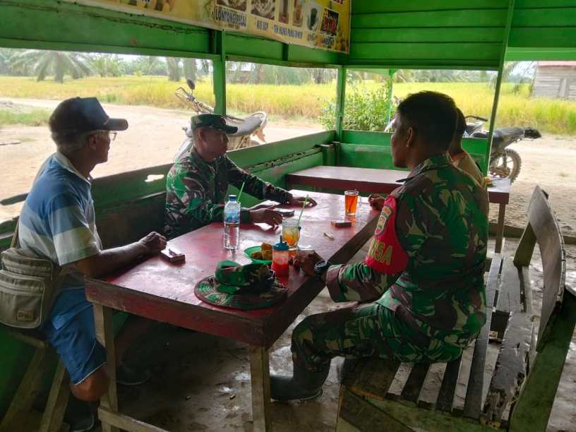 Kegiatan komsos yang berlangsung secara santai di warung milik warga setempat ini menjadi sarana silaturahmi sekaligus ruang dialog antara TNI dan masyarakat. Wadanramil didampingi Babinsa Serda R. Simbolon mengajak warga untuk terus menjaga kebersamaan serta meningkatkan kepedulian terhadap lingkungan sosial di sekitarnya sebagai bagian dari upaya menciptakan wilayah yang aman dan kondusif.