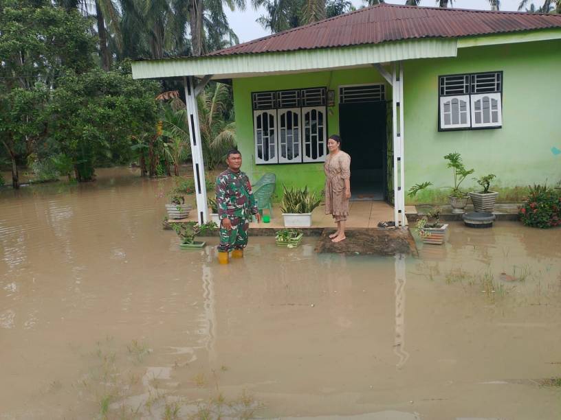 Babinsa Koramil 13/AN Serda Enos Tampubolon bersama aparat desa, BPBD, dan masyarakat setempat bahu-membahu melaksanakan penanganan banjir yang merendam sejumlah rumah warga akibat curah hujan tinggi dalam beberapa hari terakhir. Kegiatan yang dilakukan meliputi evakuasi warga lanjut usia dan anak-anak, pengamanan barang-barang berharga milik warga, serta upaya pembersihan saluran air guna memperlancar aliran air.