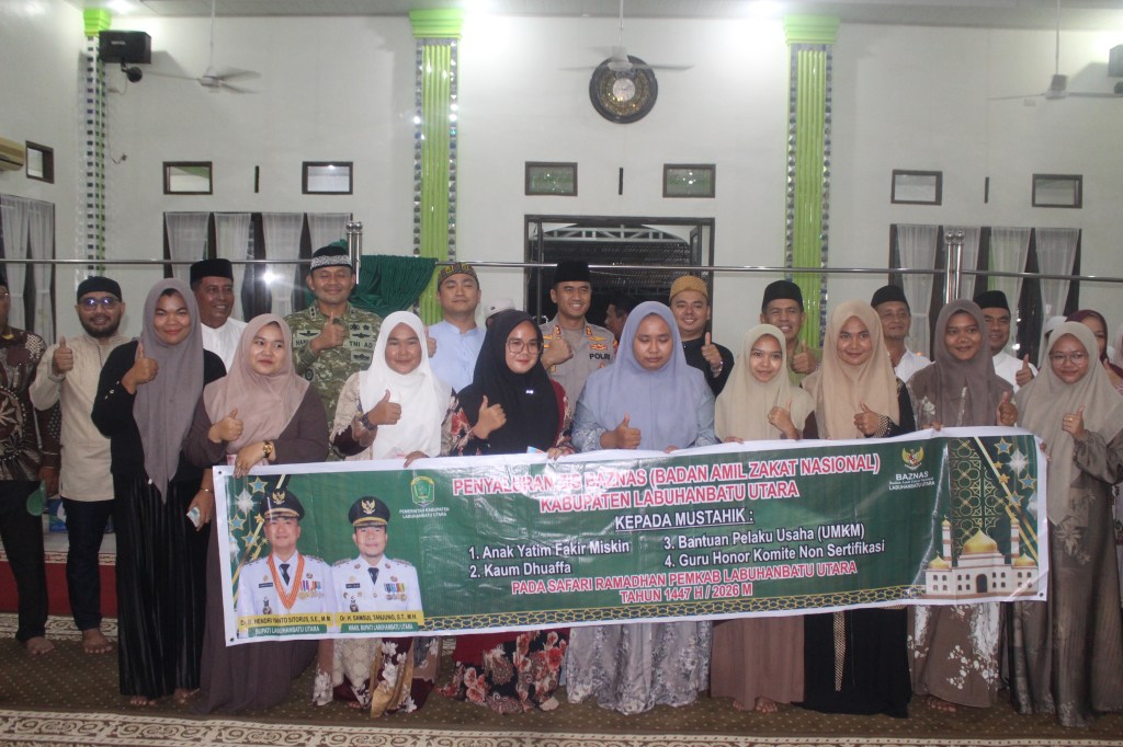 Dalam kesempatan tersebut, Pemkab Labuhanbatu Utara juga menyerahkan bantuan sosial berupa sembako kepada 25 kaum dhuafa, santunan anak yatim, bantuan UMKM kepada 10 orang, serta bantuan bagi tenaga honorer. Selain itu, secara simbolis diserahkan perlengkapan masjid berupa empat gulung sejadah, satu unit jam digital, satu unit AC dan satu unit kipas angin. Bantuan tersebut menjadi wujud kepedulian pemerintah daerah terhadap kesejahteraan masyarakat dan kenyamanan sarana ibadah.