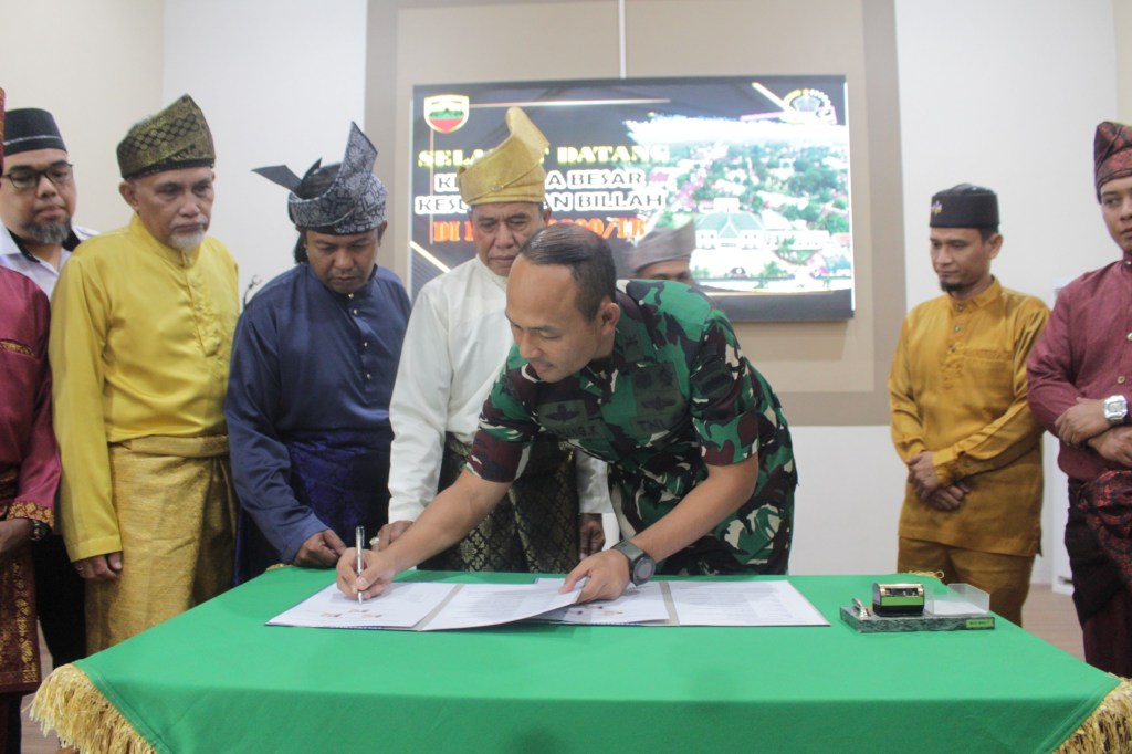 Kegiatan dilanjutkan dengan penjelasan makna nama dan lambang satuan oleh Pasi Pers Dim 0209/LB, penandatanganan pernyataan kesediaan penggunaan nama Sultan Bidar Alam, serta pertukaran cendera mata antara Dandim dan ahli waris Kesultanan Billah. Suasana berlangsung khidmat, mencerminkan sinergi antara TNI dengan tokoh adat dan pewaris sejarah daerah. Kegiatan berakhir dalam keadaan aman dan tertib, menandai kesepahaman yang kuat antara Kodim 0209/LB dan keluarga besar Kesultanan Billah.