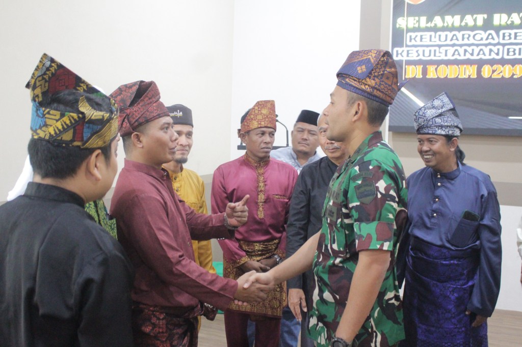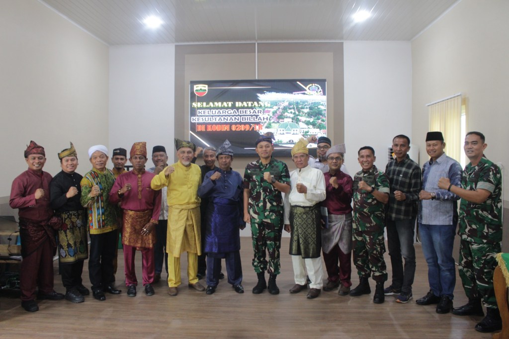 Labuhanbatu , kodim0209labuhanbatu – Komandan Kodim 0209/Labuhanbatu Letkol Kav Hanung Kaptiaji, S.Sos., M.I.P. melaksanakan silaturahmi bersama ahli waris Keluarga Besar Kesultanan Billah dalam rangka permohonan izin penggunaan nama Sultan Bidar Alam sebagai atribut satuan Yonif TP 956/Sultan Bidar Alam, Rabu (25/02/2026) di Aula Makodim 0209/LB, Jalan Abdul Aziz, Rantau Utara. Kegiatan yang berlangsung hangat dan penuh kekeluargaan tersebut dihadiri sekitar 30 orang dari unsur keluarga kesultanan, jajaran perwira Kodim, serta tokoh adat.