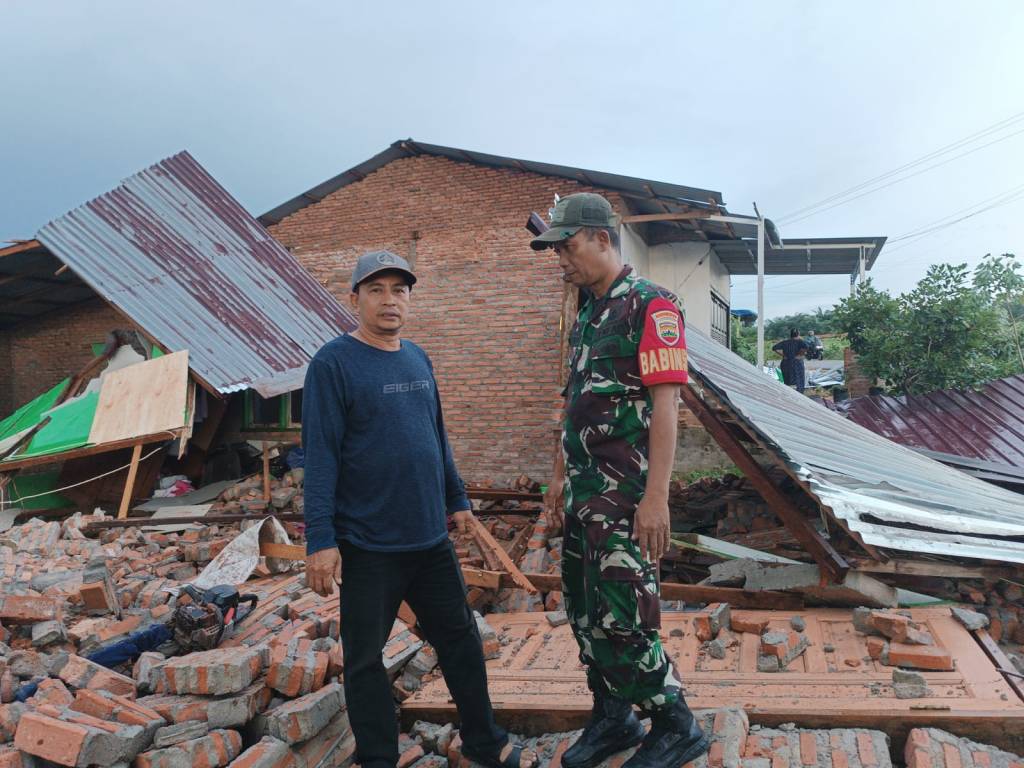 Angin kencang yang melanda wilayah tersebut menyebabkan sejumlah rumah warga mengalami kerusakan pada bagian atap dan dinding serta menimbulkan kerugian materil. Babinsa Koramil 13/AN Serma Samun langsung turun ke lapangan membantu membersihkan puing-puing, memperbaiki bagian rumah yang rusak, serta memberikan dukungan moril agar warga tetap tegar dan semangat.