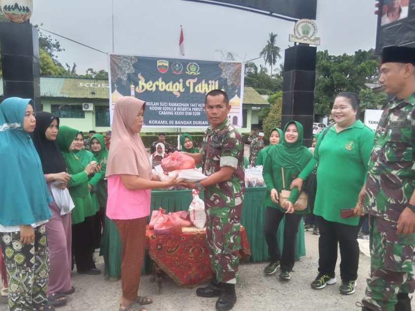 Danramil 05/BD Kapten Inf Sabar Ifantri Simanjuntak menyampaikan bahwa kegiatan berbagi takjil dan sembako ini merupakan salah satu bentuk kepedulian TNI kepada masyarakat sekaligus sebagai sarana mempererat hubungan antara TNI dengan masyarakat di wilayah binaan. “Melalui kegiatan ini kami ingin menumbuhkan semangat kebersamaan dan kepedulian kepada sesama, khususnya di bulan Ramadhan yang penuh berkah. Semoga apa yang kami lakukan dapat memberikan manfaat bagi masyarakat yang sedang menjalankan ibadah puasa,” ujarnya.
