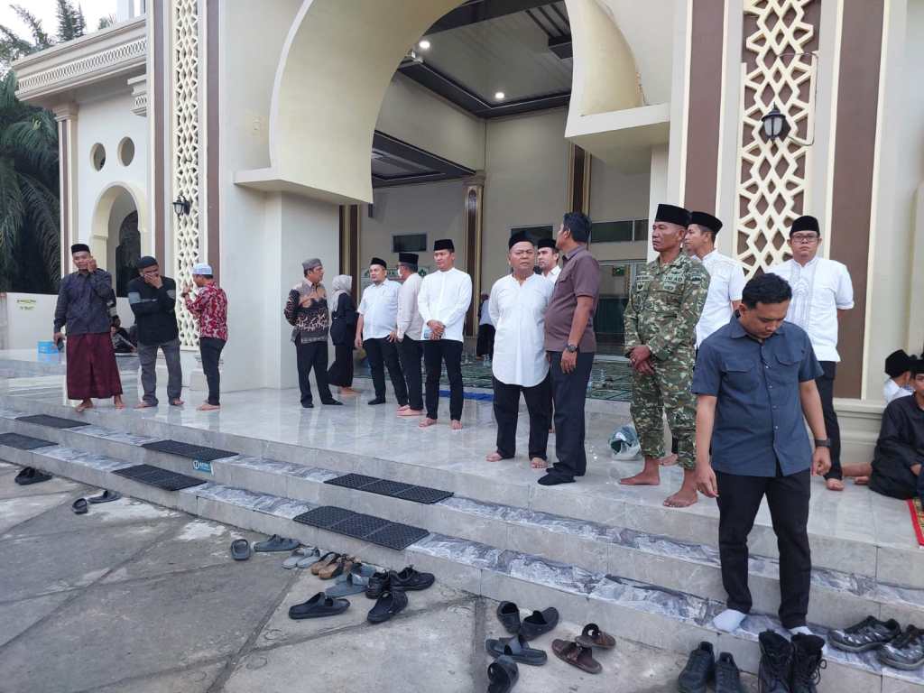 Labuhanbatu Selatan , kodim0209labuhanbatu – Danramil 10/Tanjung Medan Kodim 0209/Labuhanbatu Kapten Inf Unggul Sinambela bersama empat personel Koramil 10/TM menghadiri kegiatan Safari Ramadhan 1447 H yang dilaksanakan Pemerintah Kabupaten Labuhanbatu Selatan di Masjid Raya Al-Ikhlas, Desa Perkebunan Teluk Panji, Kecamatan Kampung Rakyat, Kamis (12/03/2026).