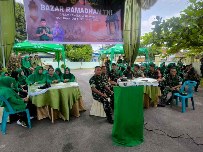 Labuhanbatu , kodim0209labuhanbatu – Kodim 0209/Labuhanbatu menggelar Bazar Murah Ramadhan yang dirangkaikan dengan Zoom bersama Panglima TNI di halaman Rumdis Kasdim 0209/LB, Jalan Meranti, Kelurahan Padang Matinggi, Kecamatan Rantau Utara, Kabupaten Labuhanbatu, Jumat (13/03/2026). Kegiatan ini dipimpin langsung Dandim 0209/LB Letkol Kav Hanung Kaptiaji, S.Sos., M.I.P., didampingi Kasdim Mayor Inf S.H. Tanjung, para Perwira Staf, para Danramil, anggota Kodim 0209/LB, serta ibu-ibu Persit. Kehadiran jajaran Kodim dalam kegiatan tersebut menjadi bukti nyata komitmen TNI AD untuk hadir membantu masyarakat, khususnya di bulan suci Ramadhan.