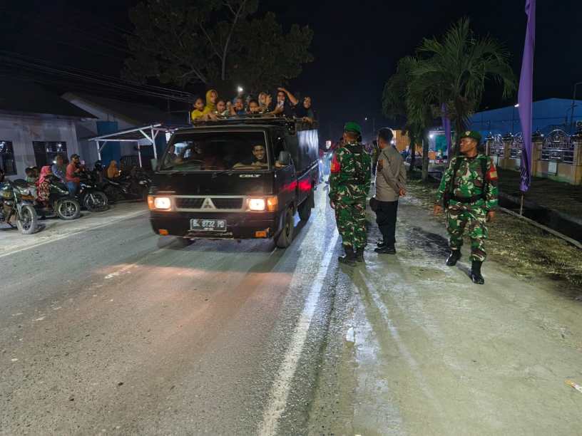 Danramil 09/NL Kapten Cba. P. Matondang menyampaikan bahwa kehadiran TNI merupakan bentuk dukungan nyata dalam menciptakan suasana yang aman dan kondusif. “Kami bersama Polri dan seluruh unsur terkait berkomitmen menjaga keamanan agar masyarakat dapat merayakan malam takbiran dengan tertib dan penuh kebersamaan,” ujarnya.