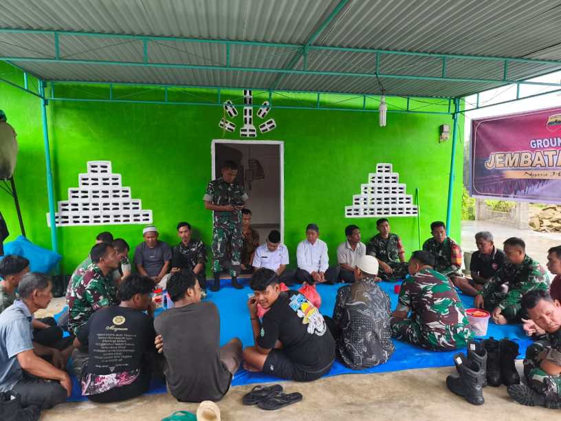 Rangkaian acara diawali dengan doa bersama sebagai ungkapan rasa syukur atas dimulainya pembangunan jembatan, dilanjutkan dengan sambutan dan makan bersama. Suasana sederhana namun penuh makna ini mencerminkan kuatnya kemanunggalan TNI dengan rakyat dalam mendukung pembangunan di wilayah.