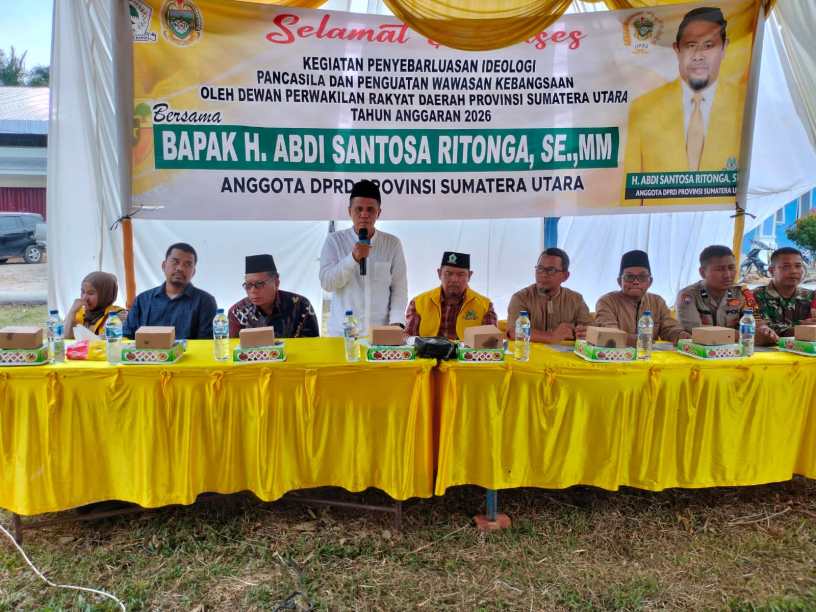 Kegiatan yang merupakan program DPRD Provinsi Sumatera Utara Tahun Anggaran 2026 ini dihadiri oleh Anggota DPRD Sumut H. Abdi Santosa Ritonga, SE., MM, Camat Pangkatan Richi Gunawan Siregar, Sekretaris Desa Sidorukun Triwanto, Bhabinkamtibmas Aipda Syahrialdi, para kepala dusun, tokoh agama, tokoh masyarakat, serta undangan lainnya. Kehadiran Babinsa menjadi wujud dukungan TNI dalam memperkuat pemahaman ideologi bangsa di tingkat masyarakat.