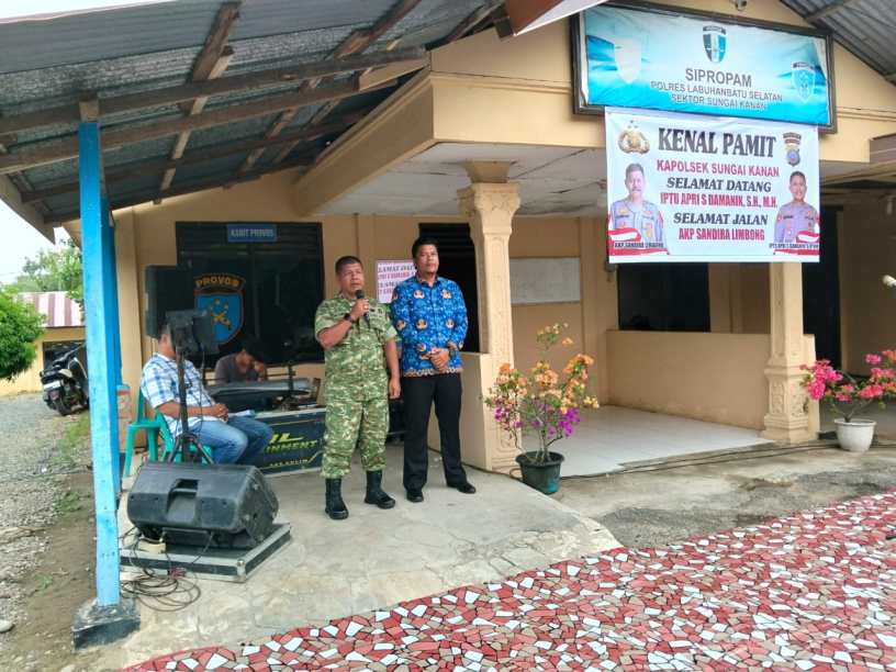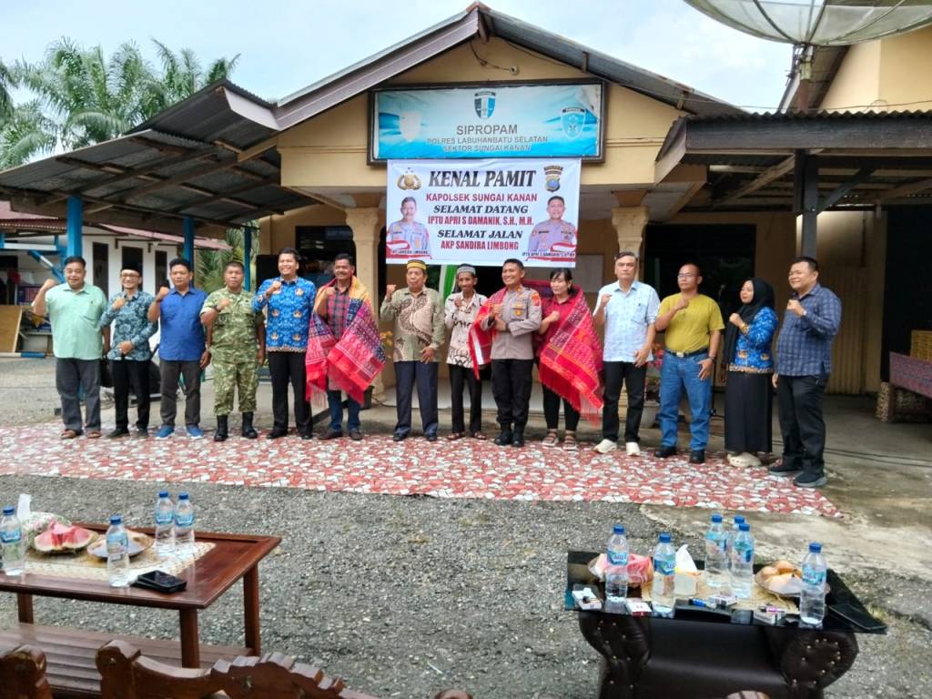 Kegiatan berlangsung dalam suasana hangat dan penuh keakraban, dihadiri Camat Sungai Kanan Yusran Hasian, SE., MM, Anggota DPRD Habibi Siregar, tokoh masyarakat, tokoh agama, serta perwakilan perusahaan dan unsur Forkopimca lainnya. Momentum ini tidak hanya menjadi ajang seremonial pergantian jabatan, tetapi juga mempererat hubungan kelembagaan antara TNI, Polri, pemerintah daerah, dan masyarakat.