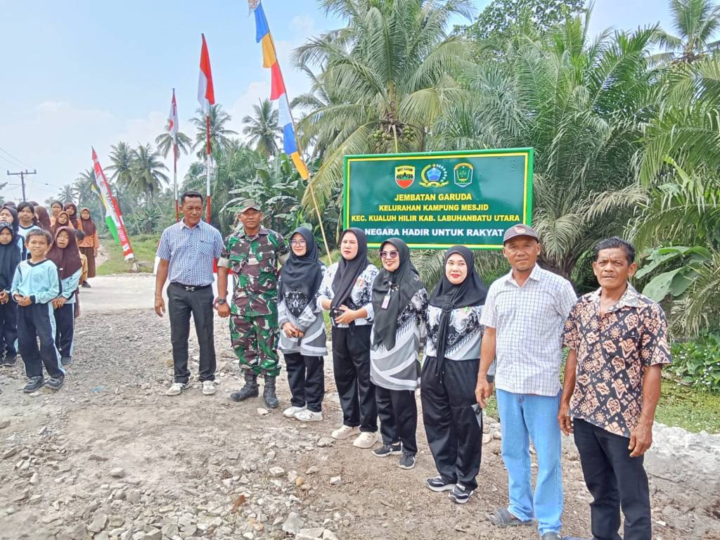 Labuhanbatu Utara , kodim0209labuhanbatu – Komitmen Kodim 0209/Labuhanbatu dalam membantu kesulitan masyarakat kembali diwujudkan melalui keberhasilan Koramil 02/Tanjung Leidong dalam merampungkan pembangunan Jembatan Armco di Lingkungan Pasar Bilah II B, Kelurahan Kampung Mesjid, Kecamatan Kualuh Hilir, Sabtu (25/4/2026). Infrastruktur yang dibangun di atas kanal banjir tersebut kini telah selesai 100 persen dan siap dimanfaatkan warga.