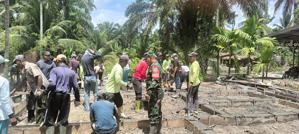 Labuhanbatu Utara , kodim0209labuhanbatu – Kepedulian TNI terhadap kesulitan masyarakat kembali ditunjukkan melalui peran aktif Babinsa Koramil 02/Tanjung Leidong Kodim 0209/Labuhanbatu. Dipimpin Serda Gofis, kegiatan gotong royong bersama warga dilaksanakan di Dusun Putat Pasar III, Desa Sei Sentang, Kecamatan Kualuh Hilir, Minggu (26/04/2026), guna membantu pembangunan rumah milik salah satu warga, Gino.